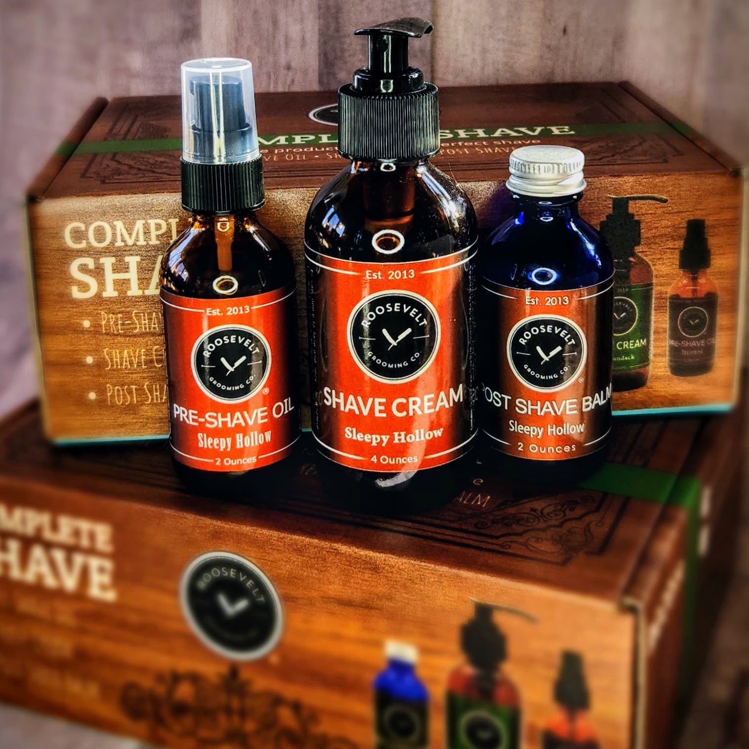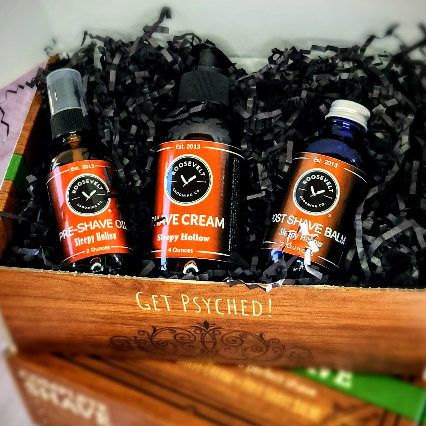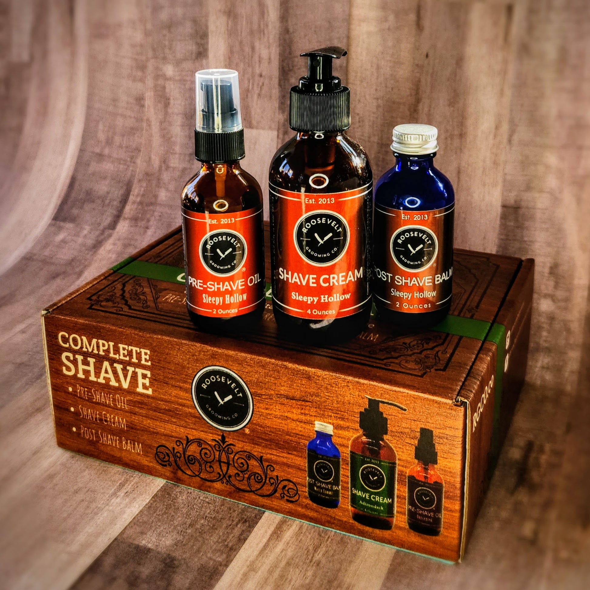 A complete shaving starter kit including all three vital products for a perfect shave. Included in this gift box is our PRE-SHAVE OIL, SHAVING CREAM and POST SHAVE BALM, as well as information describing each item and its use and purpose (and ingredients...as always). Everything is packaged in a high-quality printed box.